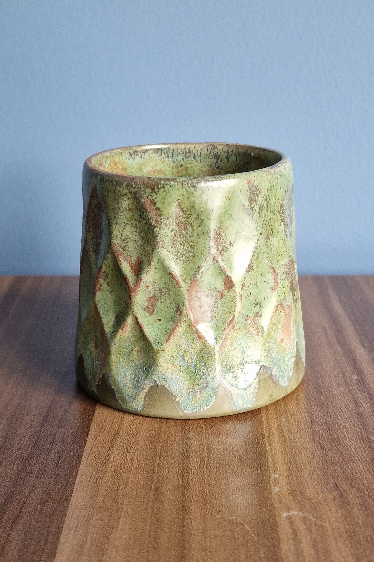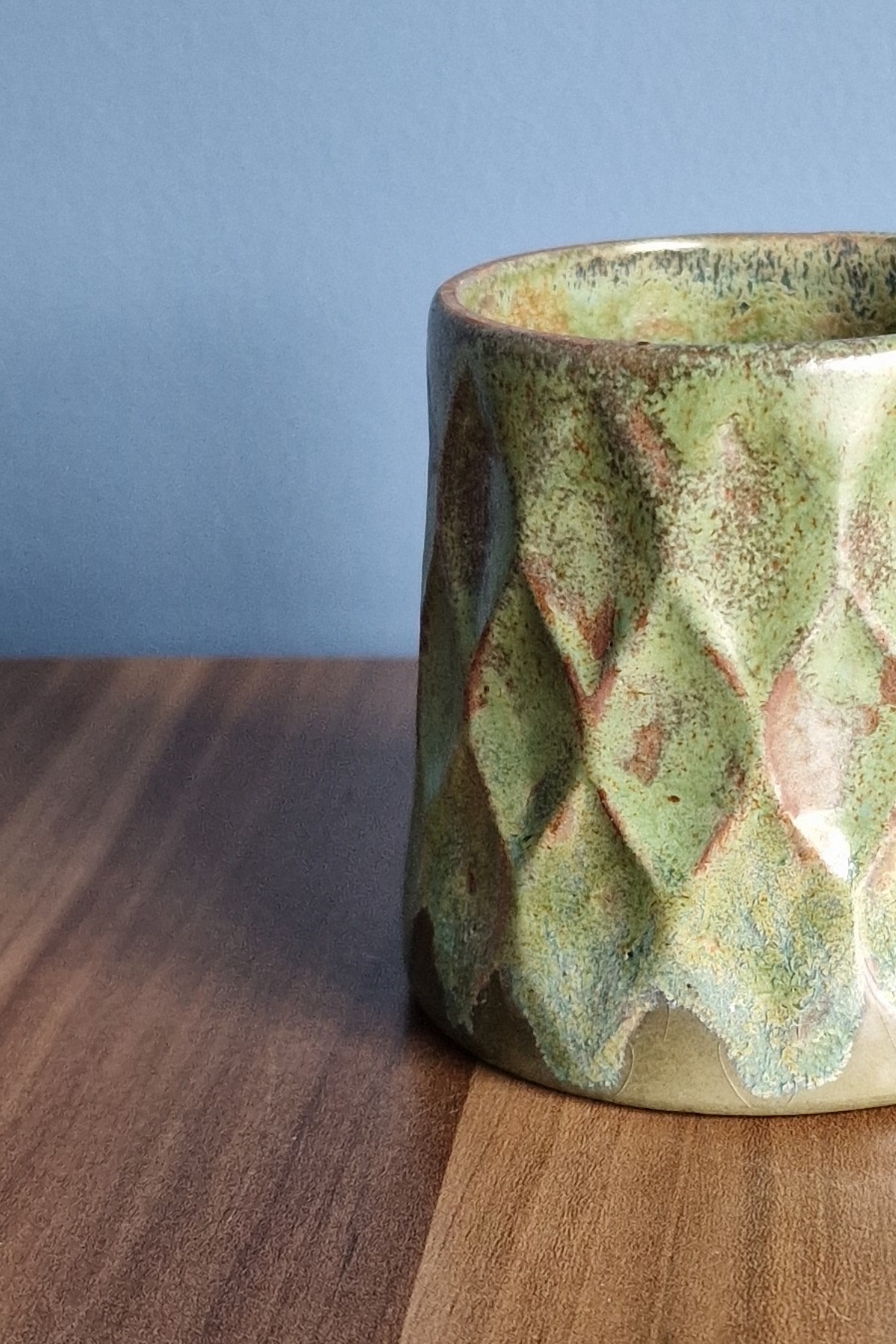 • Seramik Elmas Bardak Konik Yapıya Sahiptir. . El yapımı seramik ürünüdür. Yeşil Çamur Kullanılarak Üretilmiştir.